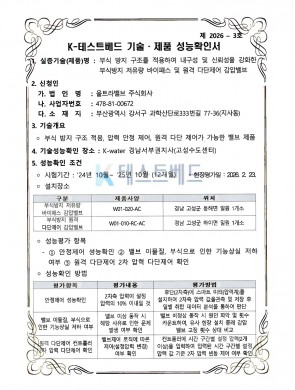 K-테스트베드 기술·제품 성능확인서